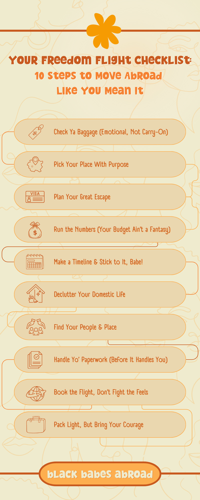 The black babes abroad freedom flight checklist is your no-fluff, 10-step guide to moving abroad like you mean it—from checking your emotional baggage to booking that ticket and bringing your courage. We’ve been there, done that, and packed the receipts (and the snacks).